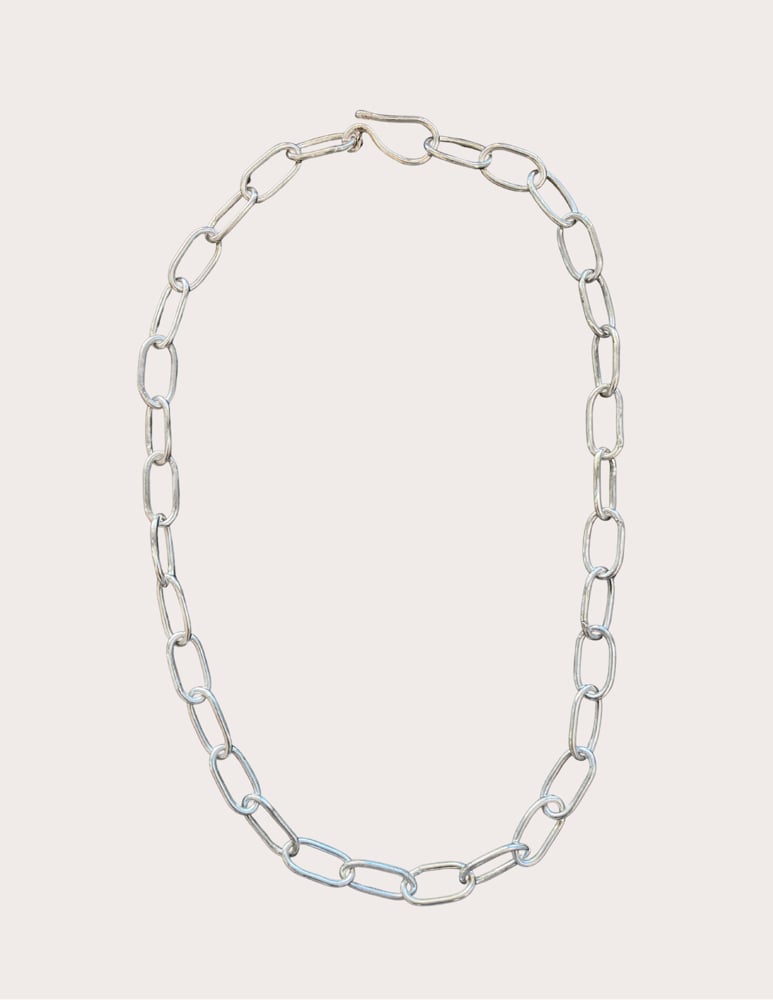 Handcrafted sterling silver heavy link chain. Easy to put on with a handmade hook closure. Designed to sit at the collarbones, can be made longer upon request.